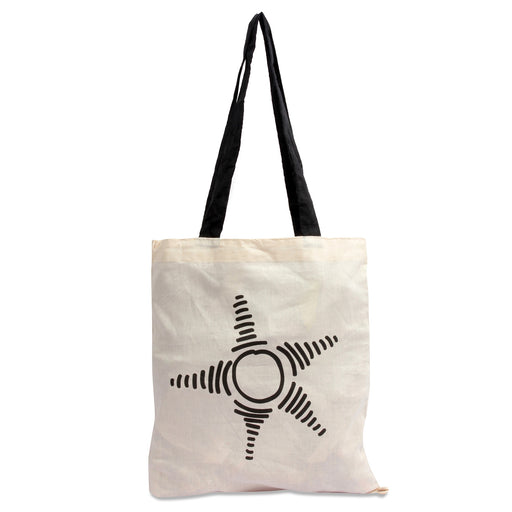 Description Go natural with this environment friendly cotton bag. In front, it has stylish though simple black print of pentagon. It has one main c...